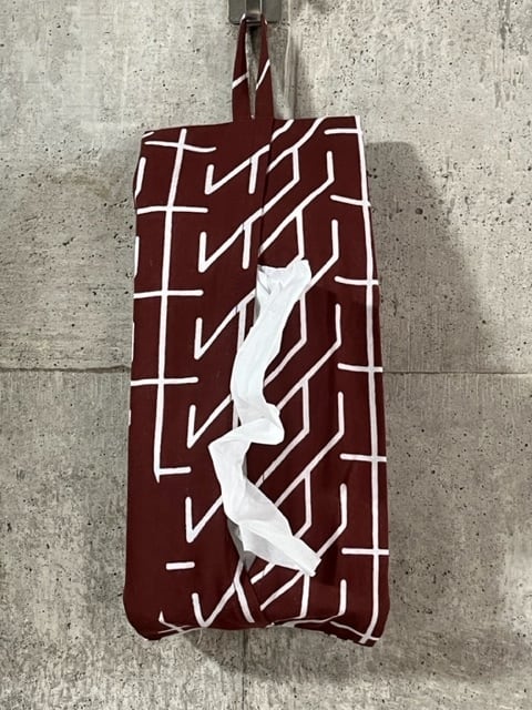 ノイホイオリジナルデザイン手ぬぐい、掛けても置いても使えるティッシュケースです。